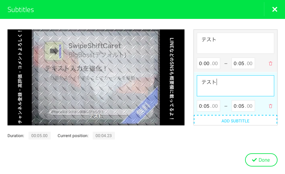 見ていただければわかると思いますが、少しずつわかりにくいところを説明していきますかなり高性能になっています。テロップとトリミングでは新たなウィンドウが開かれますので、画像を載せておきます。