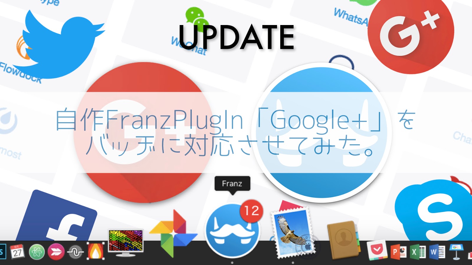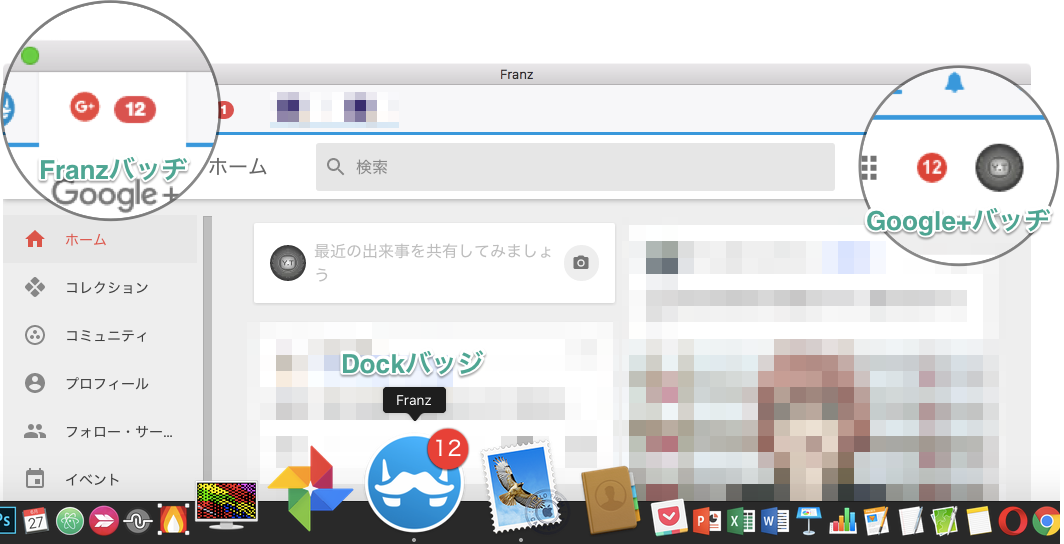 今まではGoogle+の通知(Google)のみでしたが、そのGoogle+の通知をFranzに反映させDockのアイコンにもバッヂが着くようになりました!