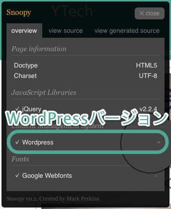 これはWordPressのバージョンを確認できるものなんですが、きちんとWordPressのバージョンが非表示になっていますね。ほんとはWordPressだっていうことも隠したいぐらい?(笑)